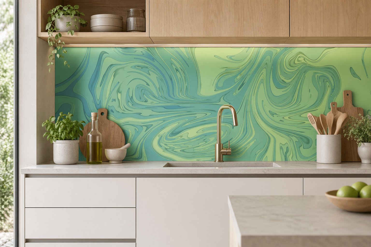 La credence Cuisine Abstrait Vert offre un esthétisme moderne et épuré, idéal pour sublimer vos espaces culinaires. Avec son motif abstrait et sa teinte verte, elle transforme immédiatement l’ambiance de votre cuisine, lui conférant une allure sophistiquée et tendance.