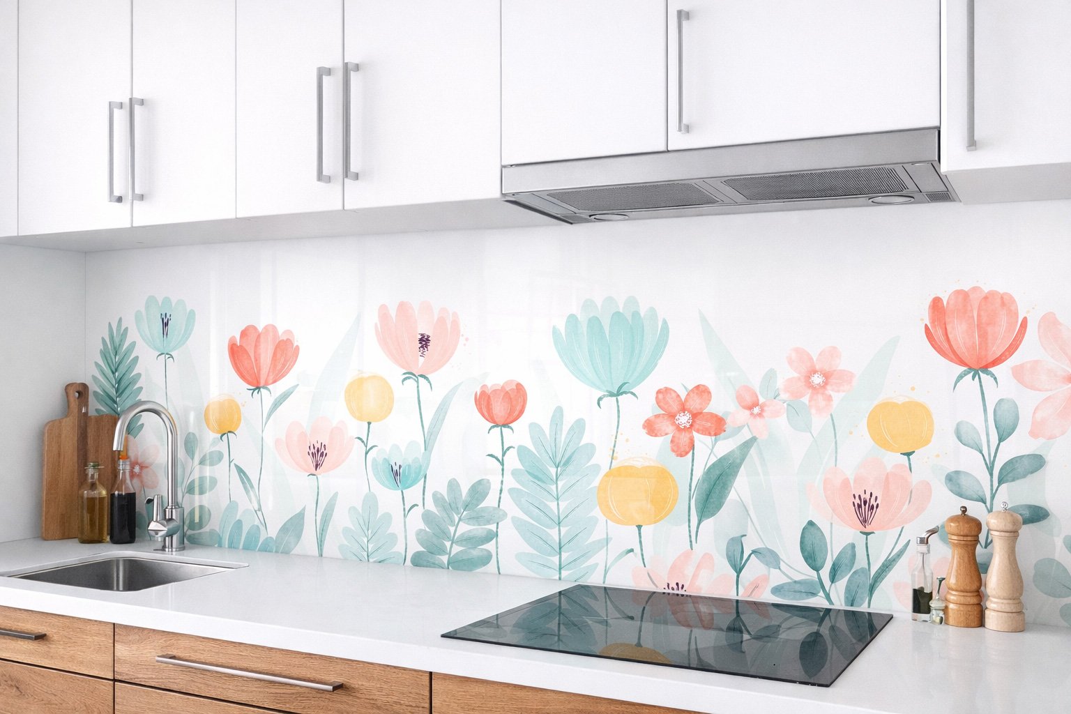Apportez une atmosphère fraîche et apaisante dans votre cuisine avec notre crédence cuisine au motif floral. Conçue en couleur eau, elle offre une esthétique raffinée tout en transformant l’ambiance de votre espace culinaire.
