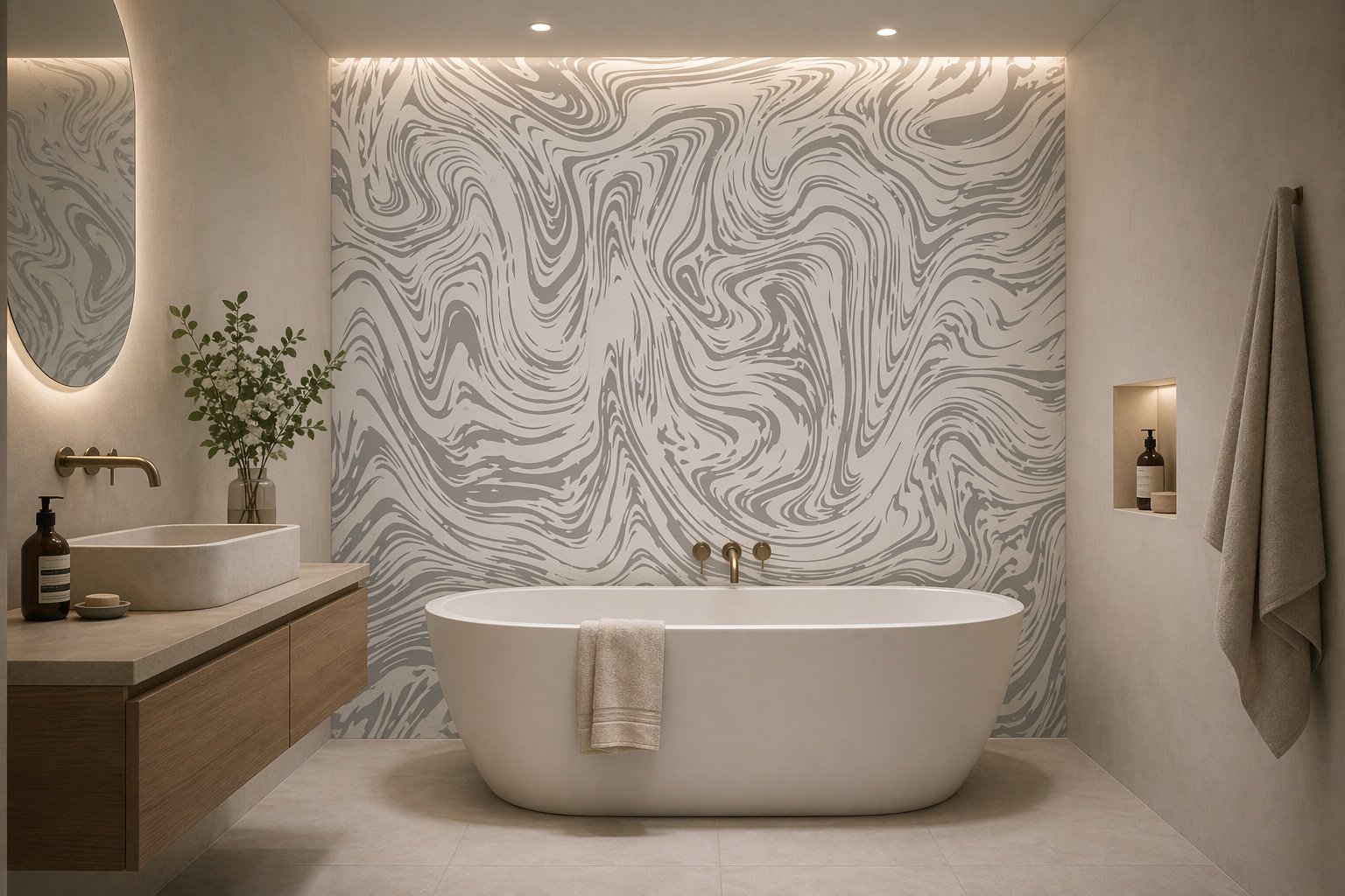 Crédence de Bain en Marbre Liquide Gris