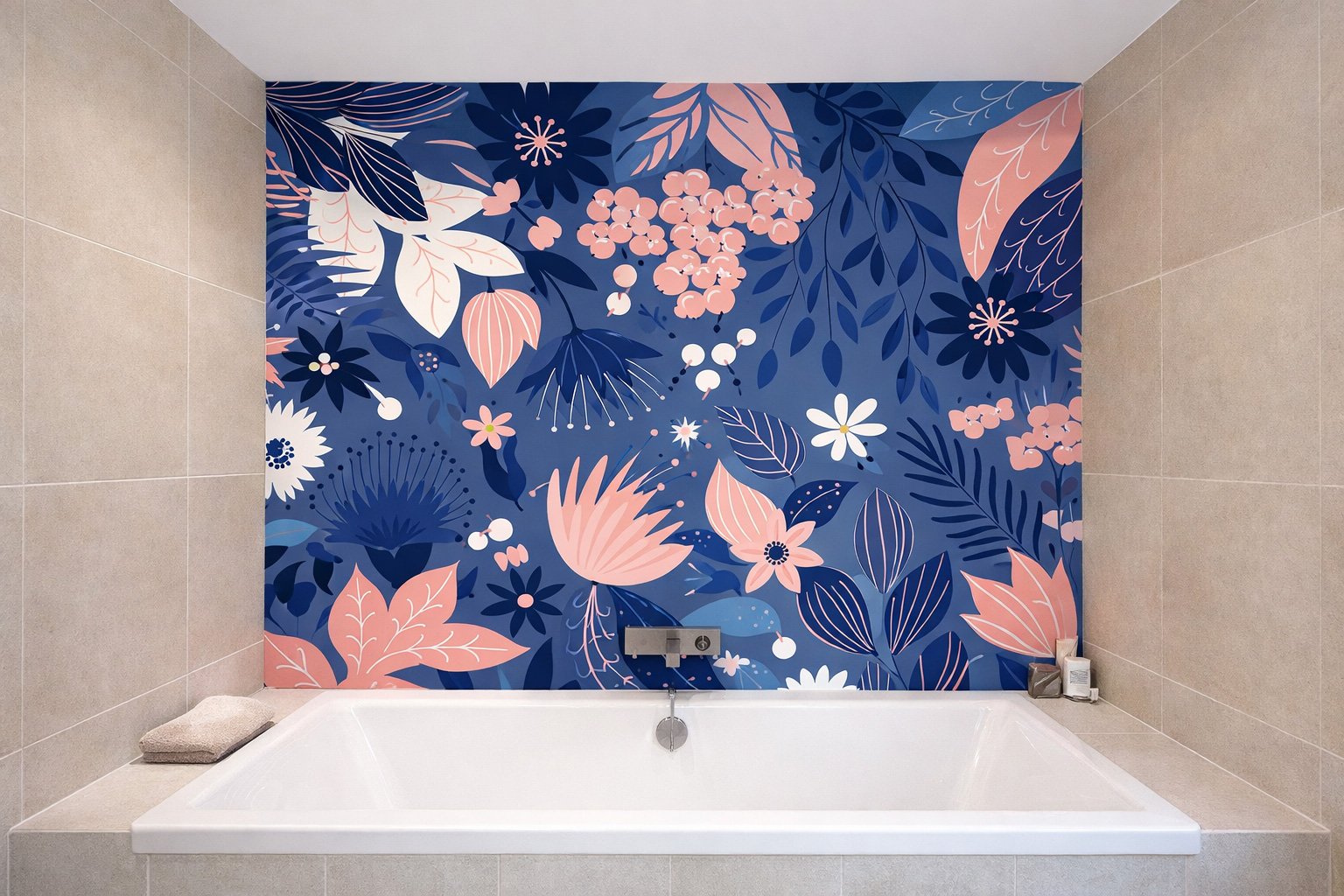 Crédence de Bain FLORAL – Bleu et Rose