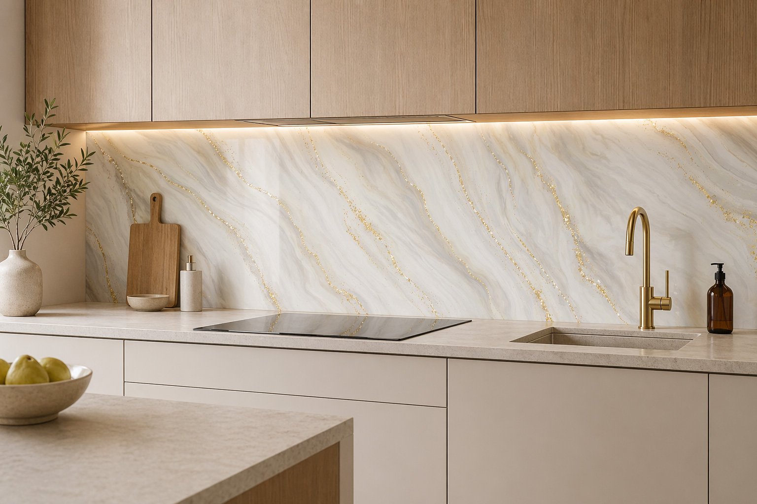 Crédence de Cuisine – Marbre Beige Doré & Gris