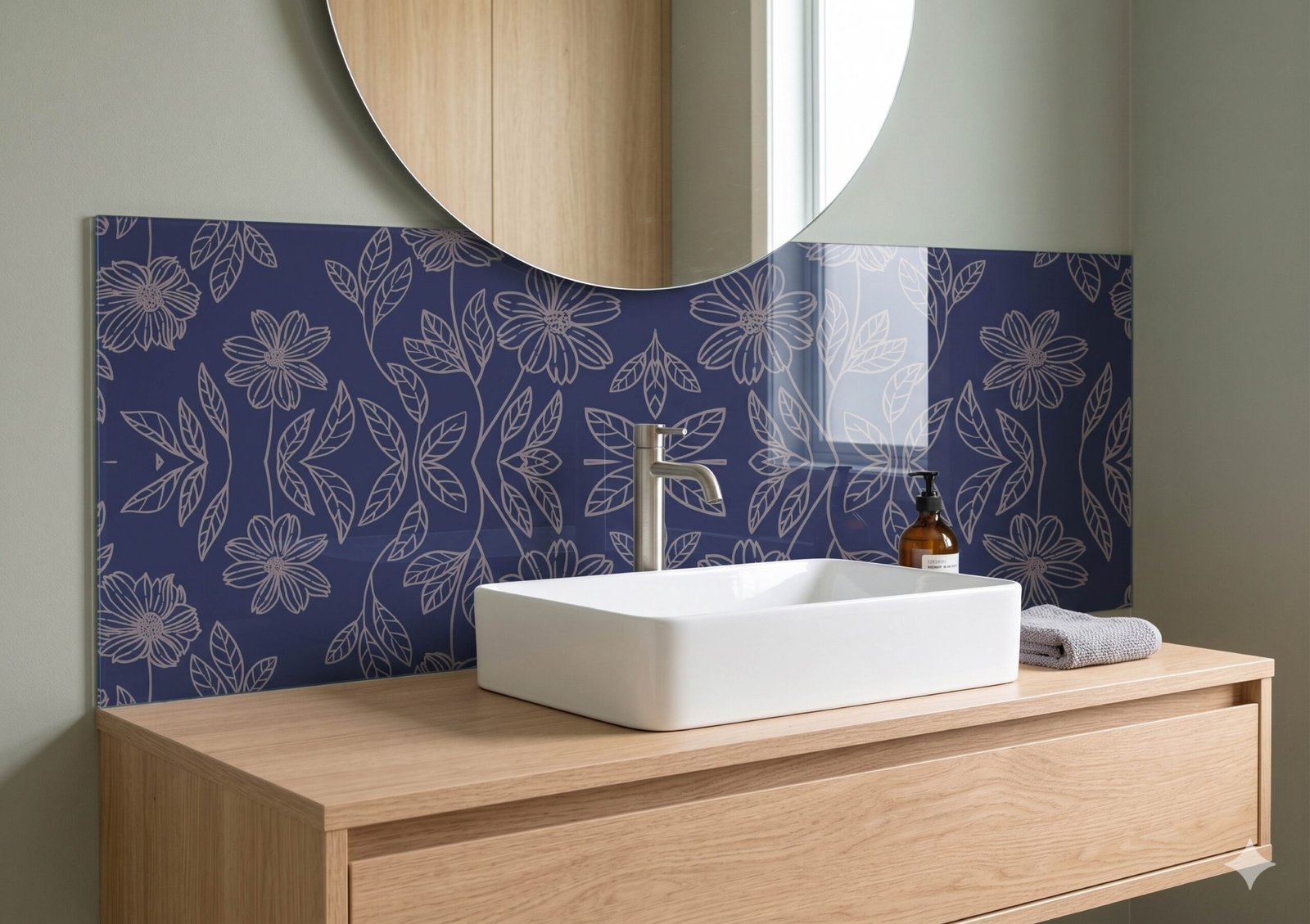 Transformez votre espace avec notre crédence de vasque au design floral unique. Conçue sur un fond nuit captivant, cette pièce allie esthétique et fonctionnalité pour rehausser l’ambiance de votre salle de bain.