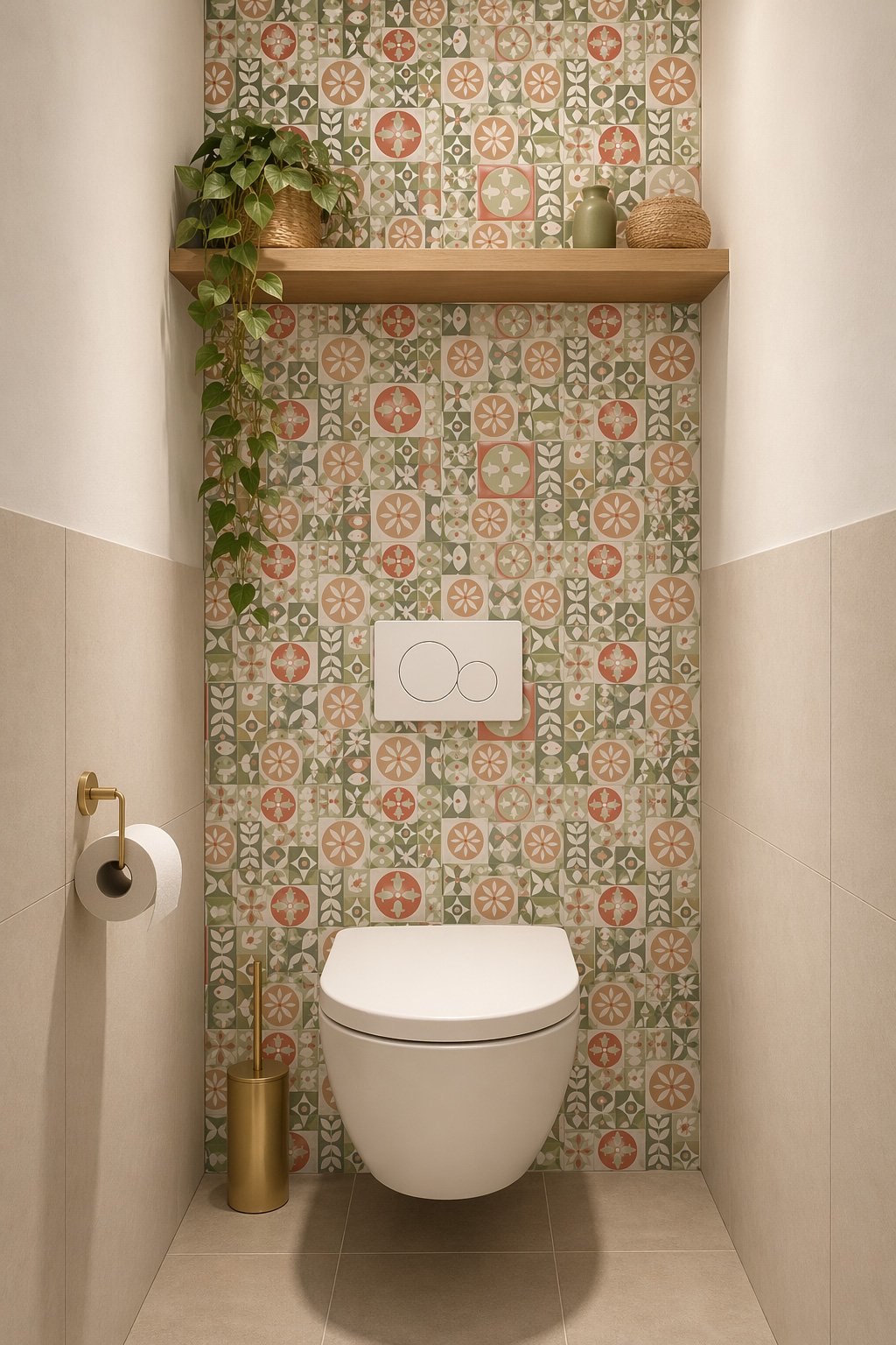 Ajoutez une touche de raffinement à votre salle de bain avec cette crédence de WC en carreau ciment. Son design unique en orange et vert apporte une esthétique moderne et charmante, idéale pour rehausser vos espaces intérieurs.