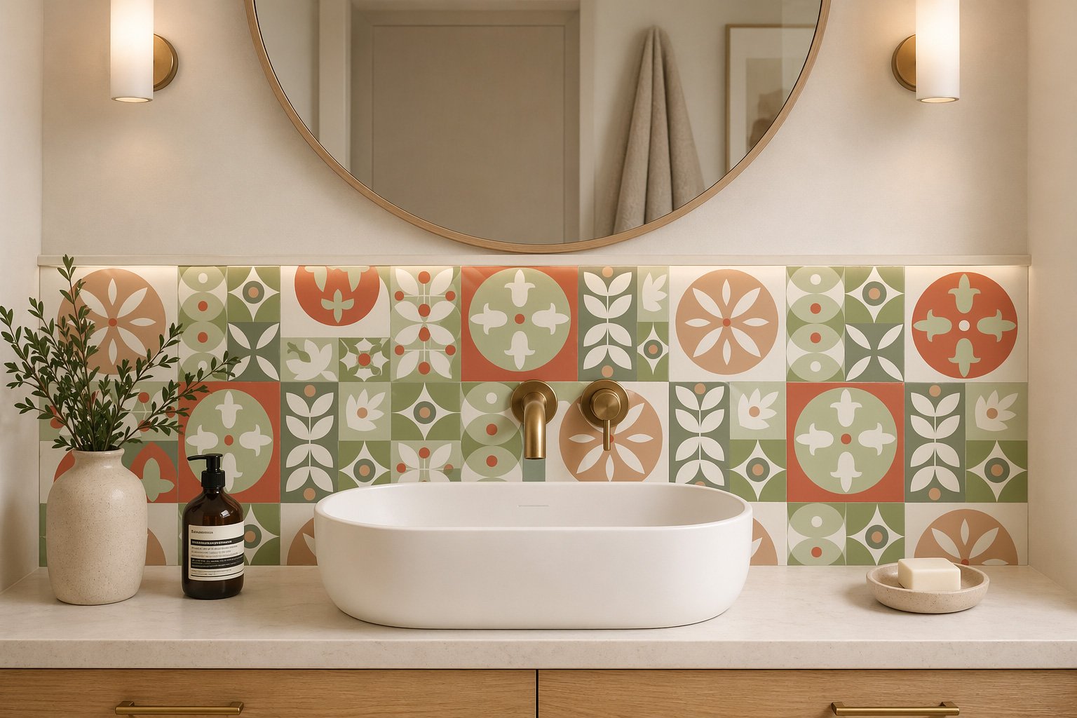Découvrez la crédence Vasque Carreau Ciment Orange et Vert, un mélange parfait d’authenticité et de modernité. Son design vibrant combine des teintes chaudes d’orange avec des nuances apaisantes de vert, créant un effet visuel saisissant qui transforme votre intérieur.