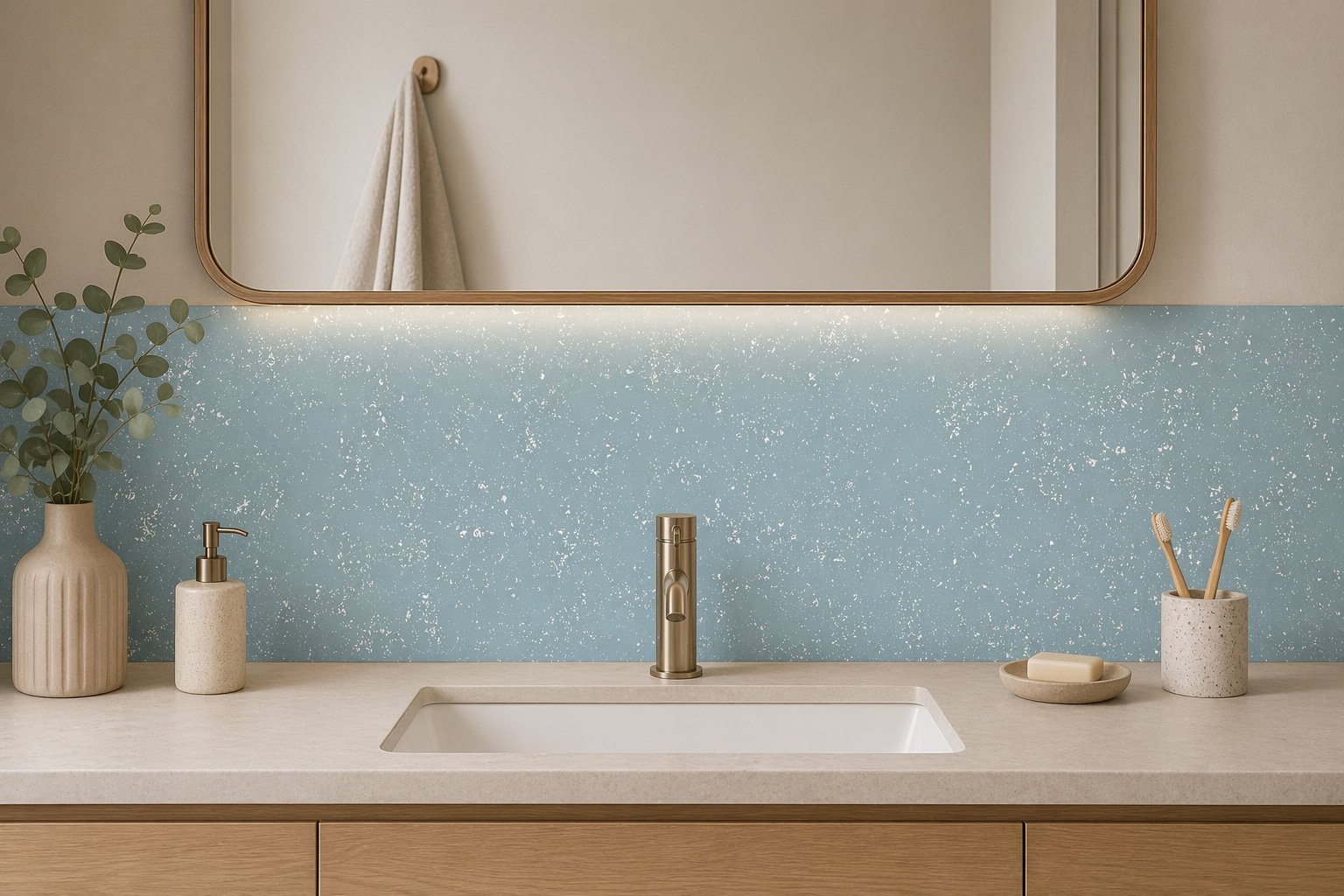 La crédence vasque Grunge Bleu Gris est conçue pour simplifier votre quotidien. Son système d’installation pratique vous permet de l’intégrer rapidement à votre salle de bain. Que ce soit pour une rénovation ou une nouvelle construction, cette crédence apportera une valeur ajoutée à votre intérieur.