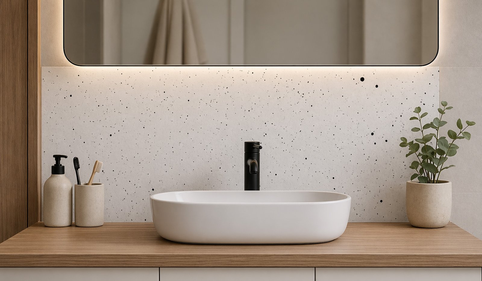 Cette crédence est simple à installer, à adapter et à entretenir. Son motif moucheté est idéal pour les espaces contemporains comme classiques, s’adaptant aux goûts les plus variés.