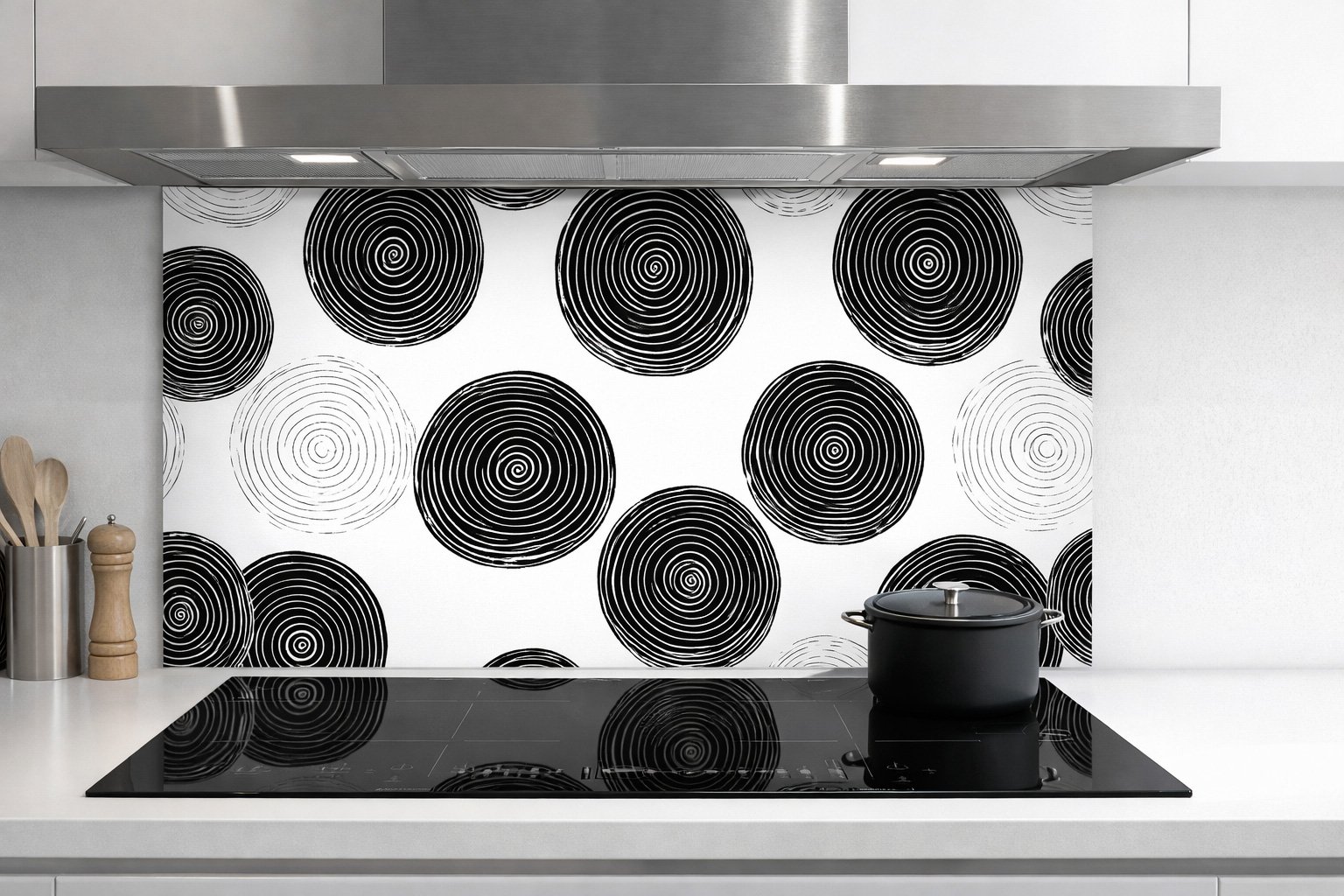 Transformez l’apparence de votre cuisine avec le fond de hotte Cercle Noir et Blanc. Ce produit allie un design esthétique moderne à une fonctionnalité essentielle, parfait pour protéger vos murs tout en embellissant votre espace culinaire.