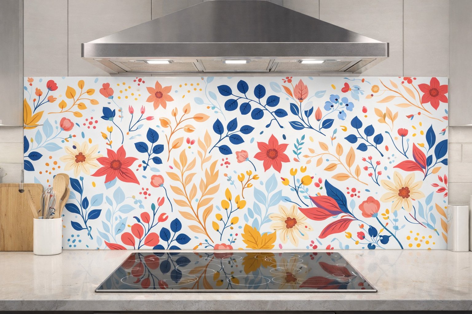 Transformez votre cuisine avec notre fond de hotte floral coloré en bleu. Son design exquis et moderne apporte une touche raffinée et charmante à n’importe quel espace culinaire. Parfait pour ceux qui recherchent une esthétique unique et apaisante.