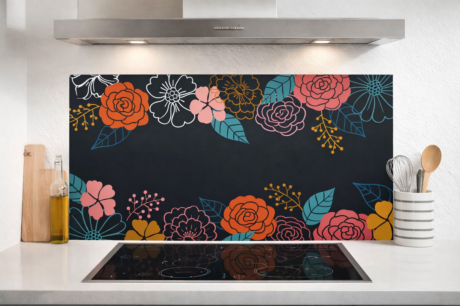 Le fond de hotte floral avec des dessins en français combine sophistication et originalité pour sublimer votre cuisine. Son motif floral délicat apporte une touche d’élégance qui s’intègre parfaitement dans tout type de décoration intérieure.
