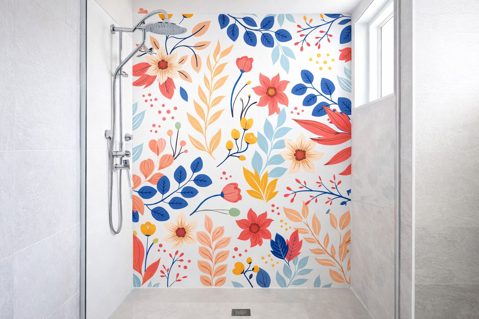 Le panneau de douche arbore un magnifique motif de fleurs en bleu riche et éclatant. Ce style intemporel est pensé pour s’intégrer harmonieusement dans divers décors de salle de bain, tout en devenant un élément visuel saisissant.