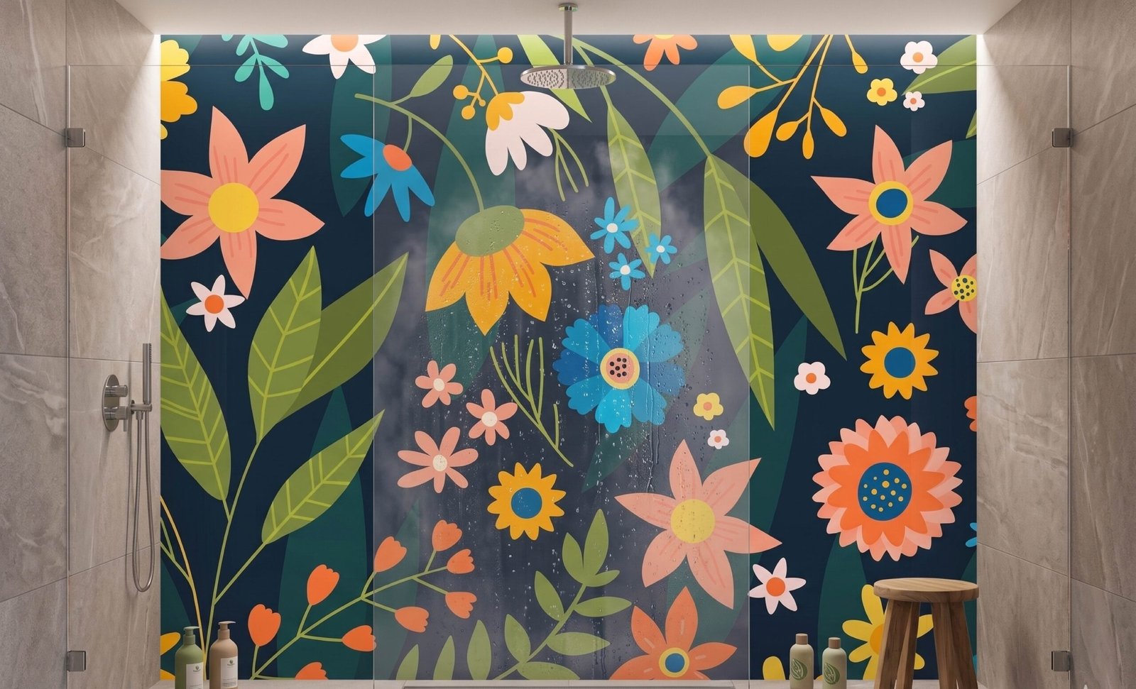 Avec le Panneau de douche à motif floral coloré sur fond nuit, transformez votre salle de bain en un espace élégant et apaisant. Ce design unique allie modernité et charme intemporel, pour une décoration parfaite.