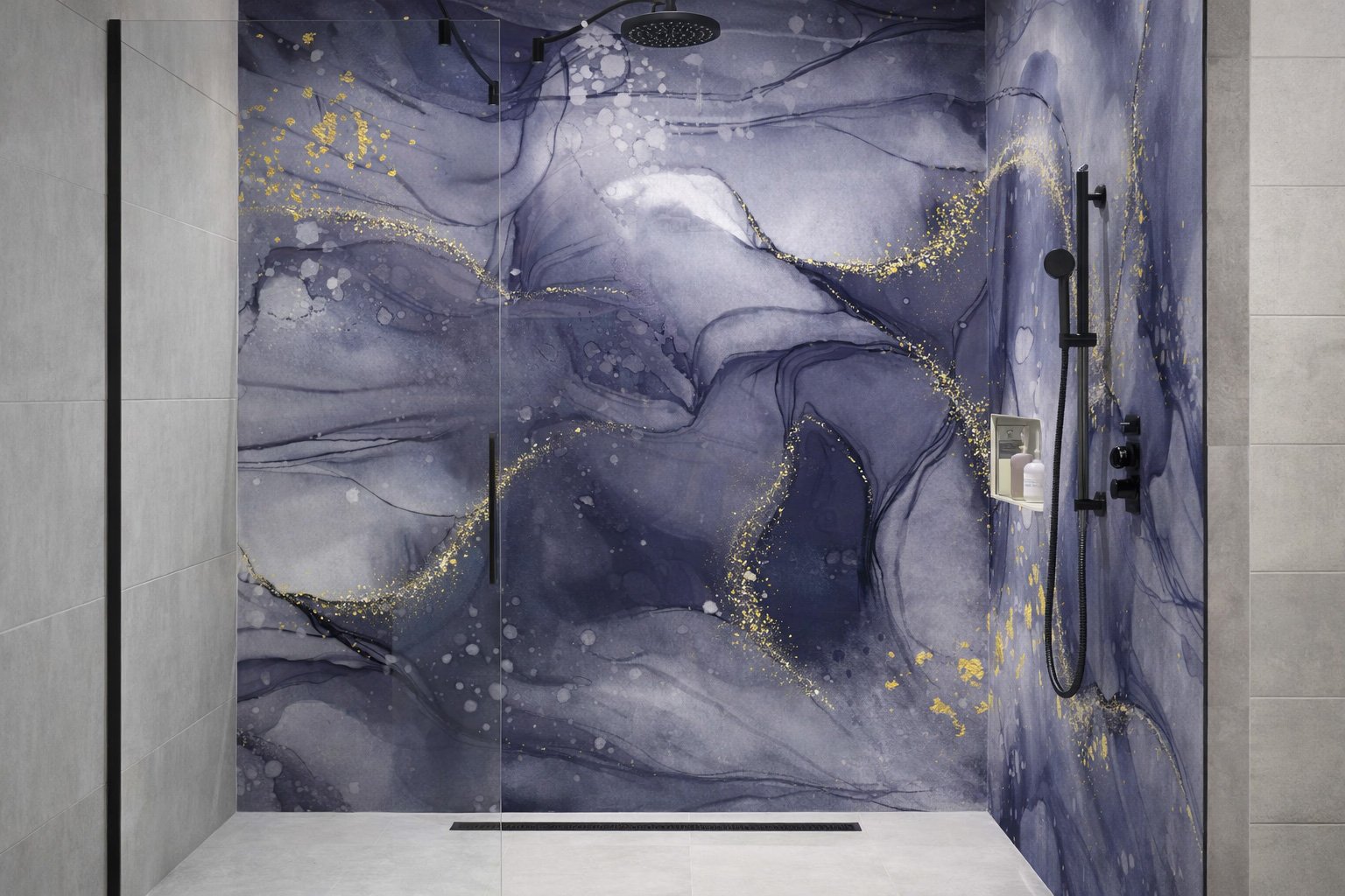 Panneau de Douche Marbre Bleu Doré