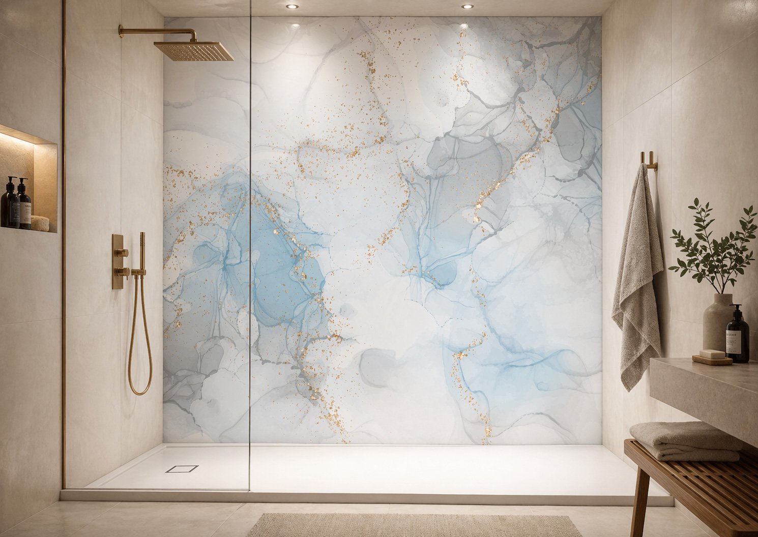 Transformez votre salle de bain grâce au panneau de douche en marbre gris-bleu. Alliant esthétique moderne et qualité supérieure, ce panneau confère un look élégant et apaisant à votre espace.