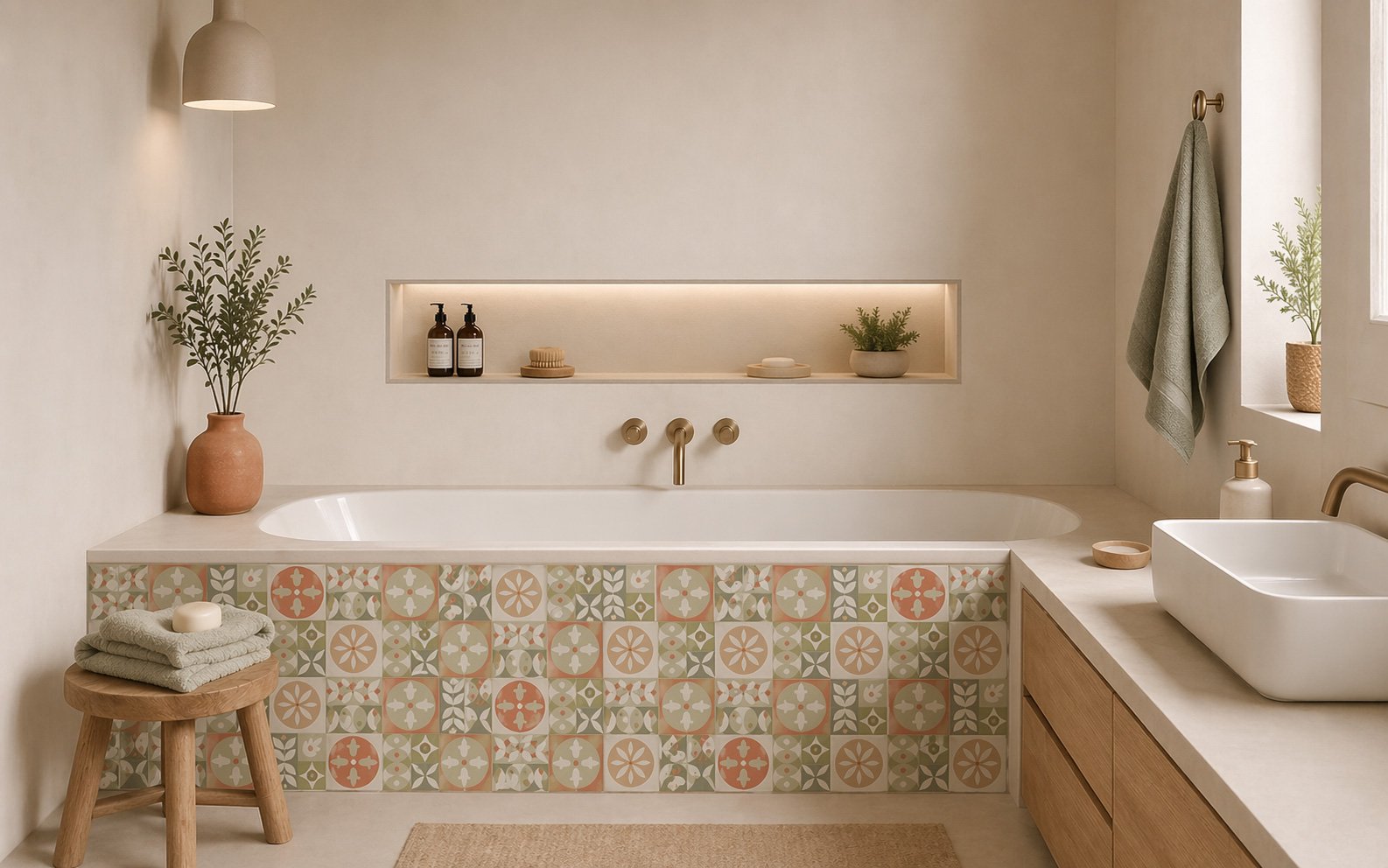 Tablier de Bain Carreau-Ciment Orange et Vert